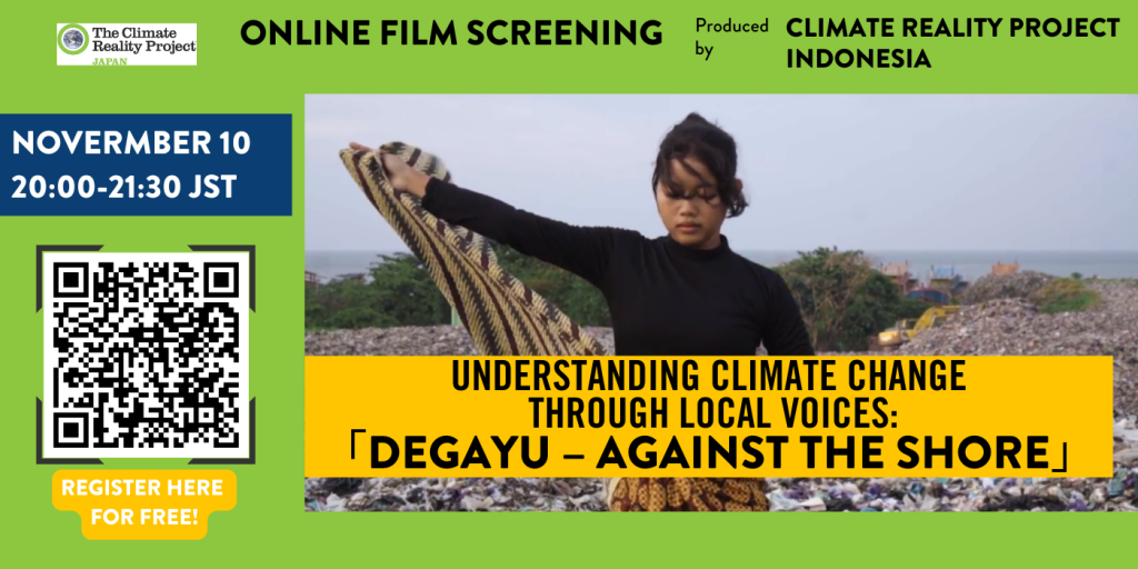 The Climate Reality Project Japan will host an online screening of the documentary film Degayu – Against the Shore, produced by the Climate Reality Project Indonesia.